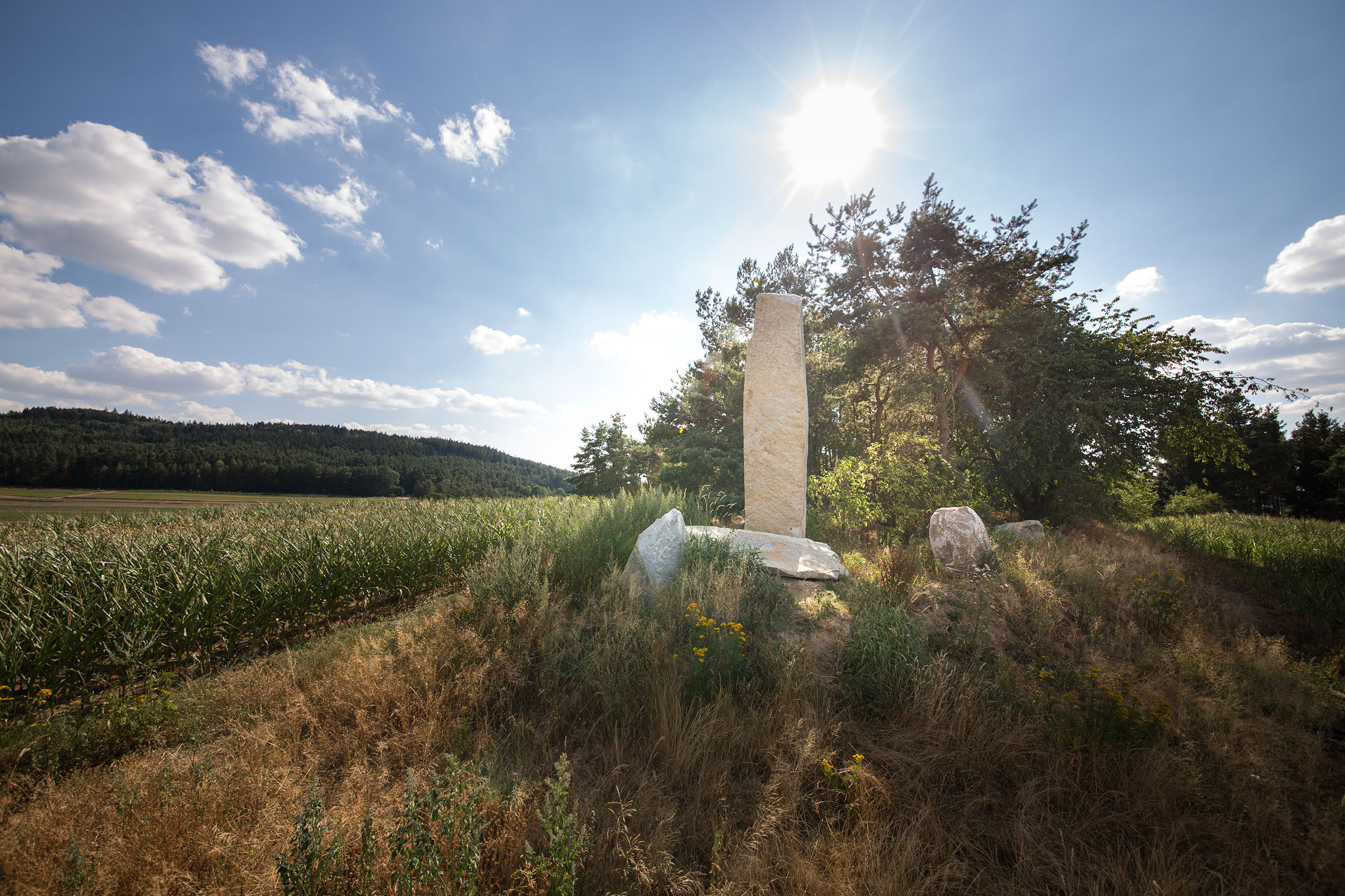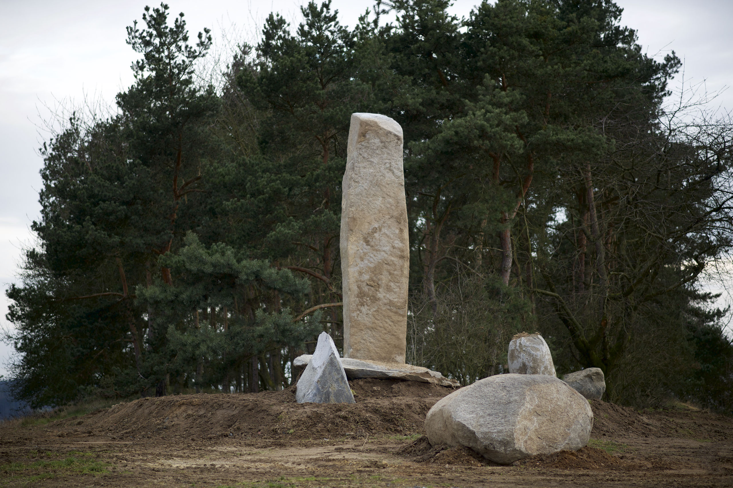 Nad obcí SRBICE je vyvýšenina se slavným románským kostelíkem. Přes údolí, jižním směrem, s ním pohledově koresponduje kopec, o němž je známo, že tu „prorůstají vrstvy různých civilizačních období“. Místo pro projekt „PRORŮSTÁNÍ“ je zvoleno tak, aby stálo na hranici obdělávané půdy a remízku vzrostlých stromů. Objekt bude sesazen z několika kamenicky propojených bloků. Nejvyšší z nich měří 7 metrů.