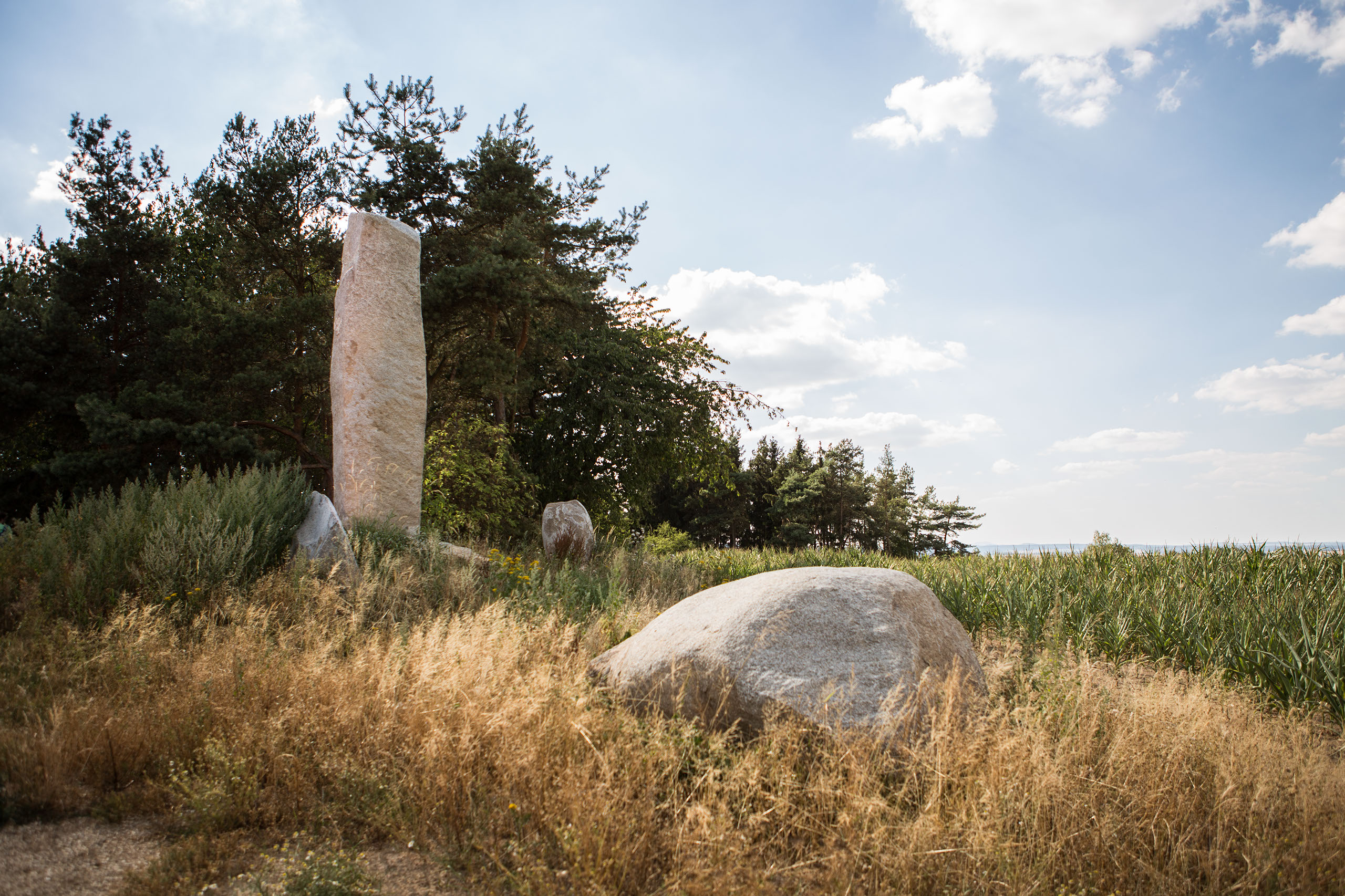 Nad obcí SRBICE je vyvýšenina se slavným románským kostelíkem. Přes údolí, jižním směrem, s ním pohledově koresponduje kopec, o němž je známo, že tu „prorůstají vrstvy různých civilizačních období“. Místo pro projekt „PRORŮSTÁNÍ“ je zvoleno tak, aby stálo na hranici obdělávané půdy a remízku vzrostlých stromů. Objekt bude sesazen z několika kamenicky propojených bloků. Nejvyšší z nich měří 7 metrů.